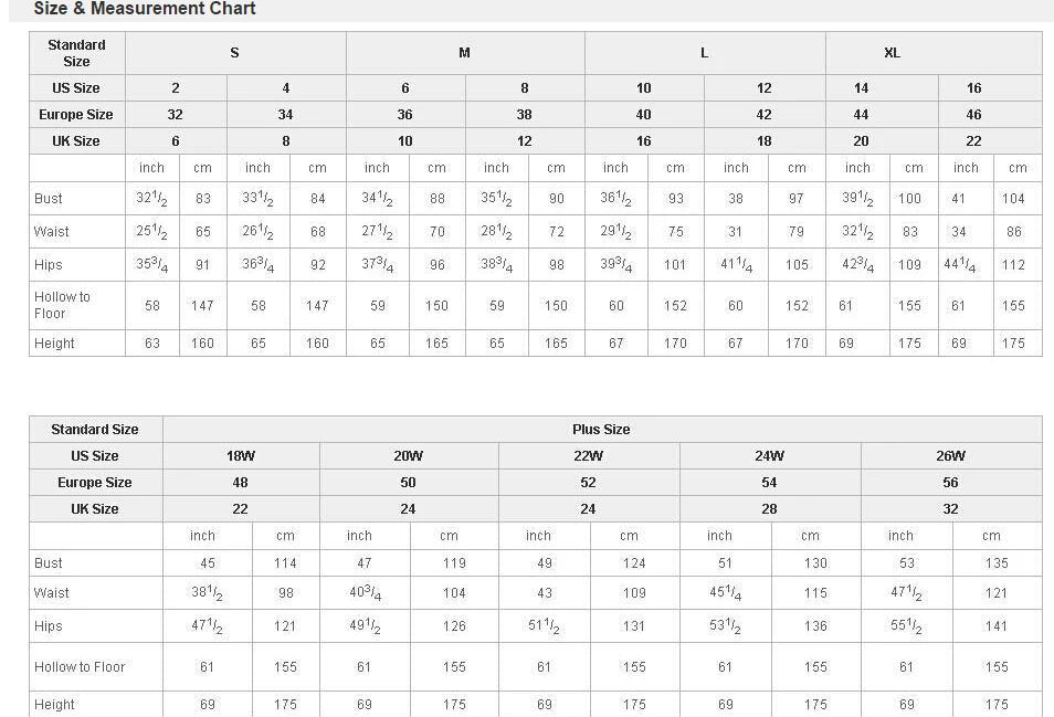 If you know your body size very well and it is not convenient to re-measure your body, you can choose to order your wedding dress according to the standard size. Please check the detailed data and submit the order in the size closest to your body size data. If you choose any size parameters that are significantly different from your figure, please contact us in time.