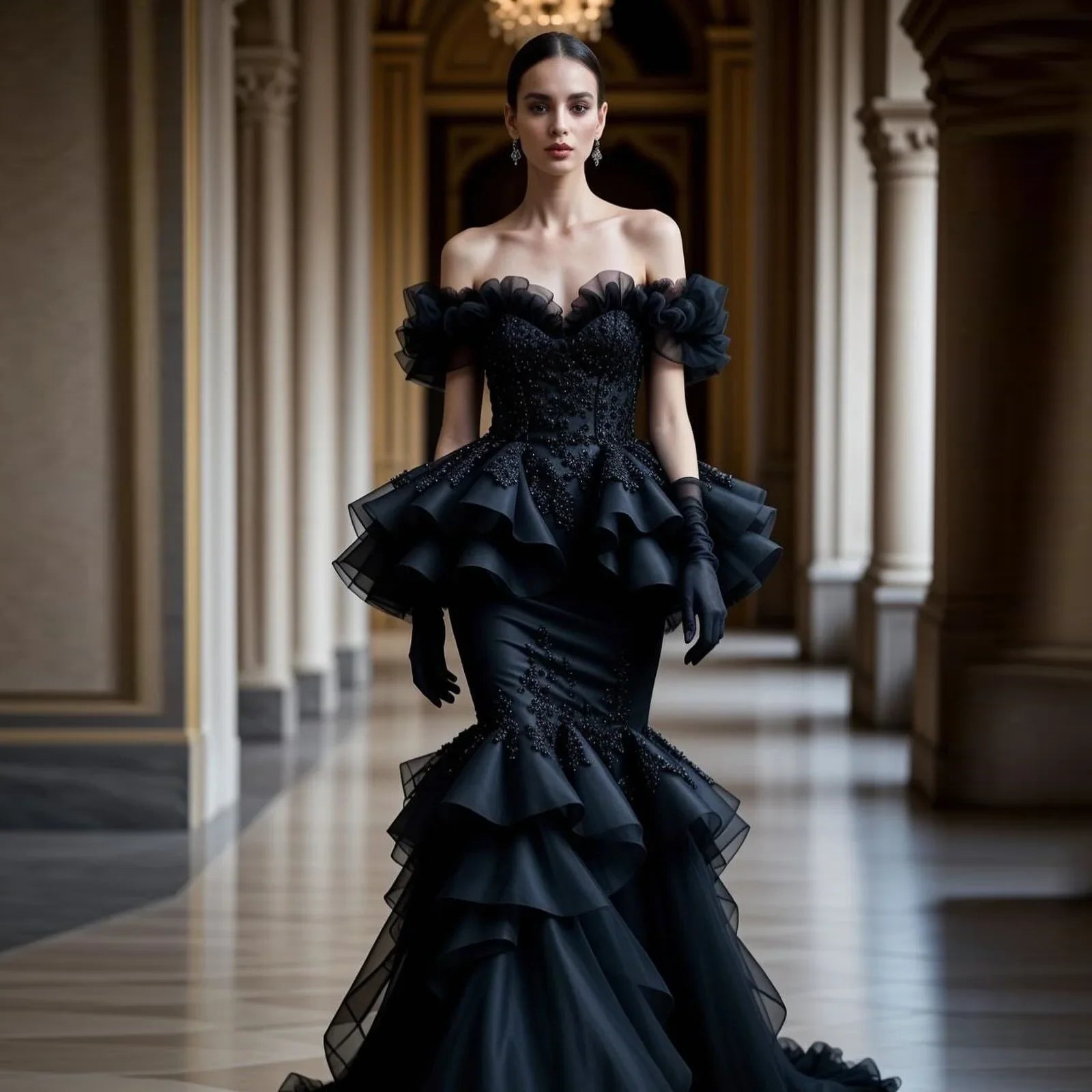 Luxury Organza Peplum Women Dress Applique Prom Gowns Layered Custom Made Special Mermaid Party Dresses Beaded Sweetheart